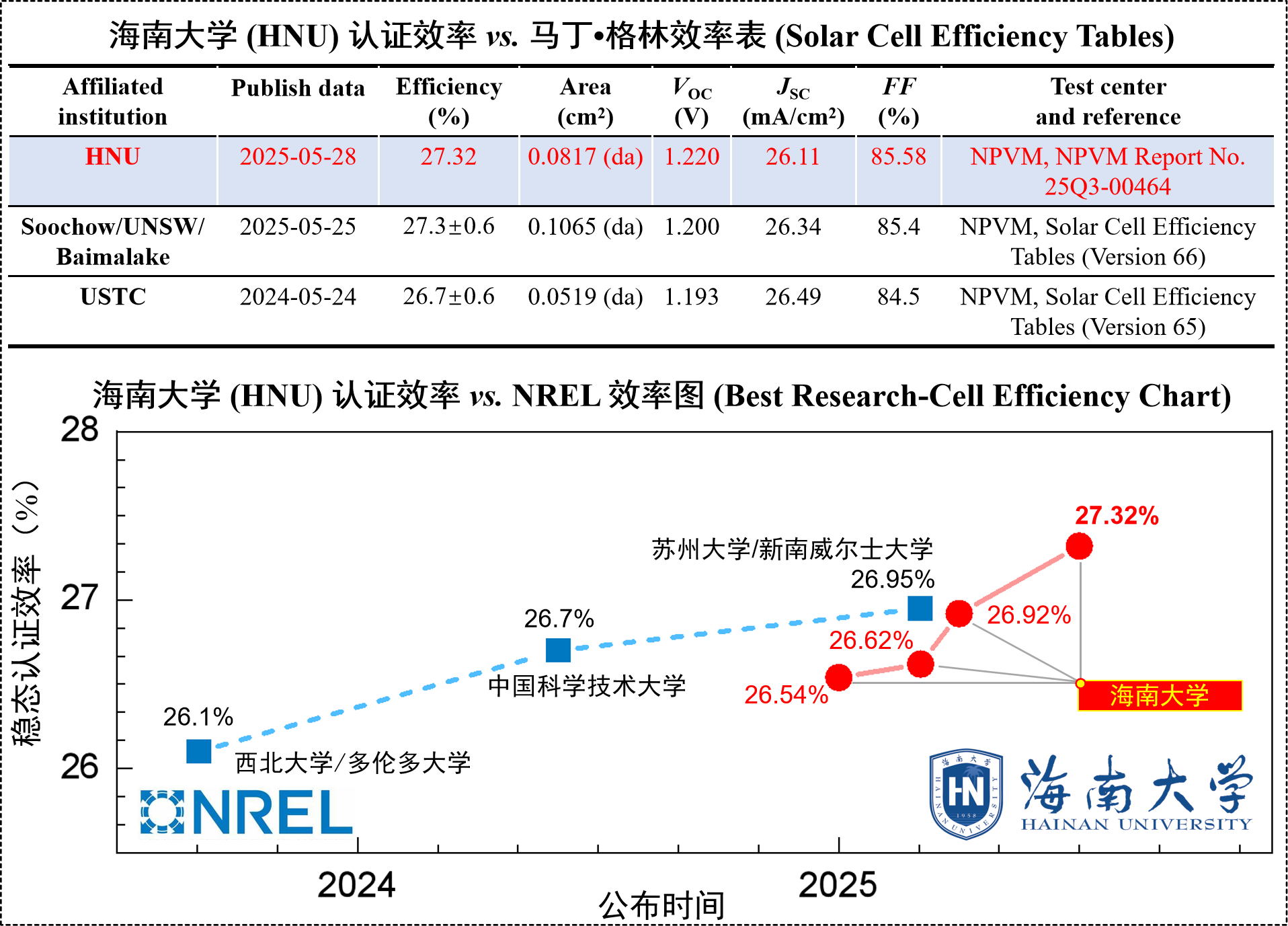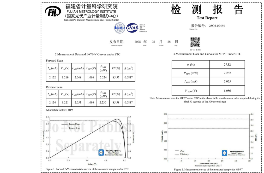 该功率超过了此前由美国国家可再次出产的动力实验室2025年2月发布的26.95%最新功率世界纪录,以及马丁·格林太阳能电池功率统计表2025年5月录入的27.3%职业标杆值。